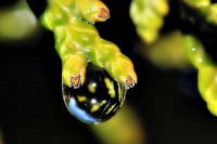 Fotoexperimente mit beispielsweise Luftblasen, mit Wassertropfen oder  außergewöhnliche Spiegelungen in Verbindung mit starker Vergrößerung [Nahaufnahmen, Makrobilder] reizen mich.